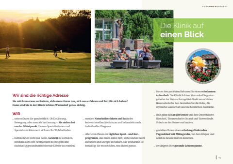 Die Klinik auf einen BlickWIRWir sind die richtige AdresseSie m%u00f6chten etwas ver%u00e4ndern, sich etwas Gutes tun, sich neu erfahren und Zeit f%u00fcr sich haben? Dann sind Sie in der Klinik Schloss Warnsdorf genau richtig.%u2026 unterst%u00fctzen Sie ganzheitlich: Ob Ern%u00e4hrung, Bewegung oder mentale Verfassung %u2013 Sie stehen bei uns im Mittelpunkt. Unsere Spezialistinnen und Spezialisten k%u00fcmmern sich um Ihr Wohlbefinden.%u2026 helfen Ihnen nicht nur dabei, Gewicht zu verlieren, sondern auch Ihre Achtsamkeit zu steigern und nachhaltig gesundheitsf%u00f6rdernde Efekte zu erzielen. %u2026 wenden Naturheilverfahren auf Basis der konventionellen Medizin an und behandeln nach individueller Diagnose.%u2026 oferieren Ihnen ein t%u00e4gliches Sport- und Kur- programm, das Ihnen dabei hilft, sich rundum wohl zu f%u00fchlen und Energie zu tanken. Die Teilnahme ist freiwillig: Sie entscheiden, was Ihnen guttut.%u2026 bieten den perfekten Rahmen f%u00fcr einen erholsamen Aufenthalt. Die Klinik Schloss Warnsdorf liegt ein- gebettet im Naturschutzgebiet direkt am sch%u00f6nen Hemmelsdorfer See. Genie%u00dfen Sie die Ruhe, die idyllische Landschaft und die herrlichen Ausblicke.%u2026 sind ganz nah an der Ostsee und den Ostseeb%u00e4dern Niendorf, Timmendorfer Strand und Travem%u00fcnde. Urlaub an der Ostsee mal anders.%u2026 gestalten Ihnen einen erholungsf%u00f6rdernden Tagesablauf mit Mittagsruhe, bei dem K%u00f6rper und Geist zu neuen Kr%u00e4ften kommen.%u2026 verl%u00e4ngern Ihre gesunde Lebensspanne.29ZUSAMMENGEFASST